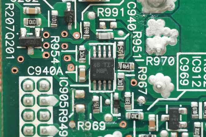 电压比较器来自德州仪器,丝印M8P,型号LM393A,为工业级双通道精密差分比较器,采用VSSOP8封装。